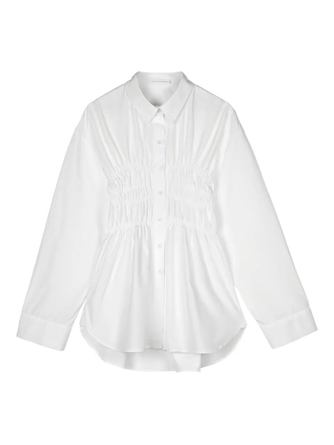 white gathered detail button fastening long sleeves buttoned cuffs curved hem