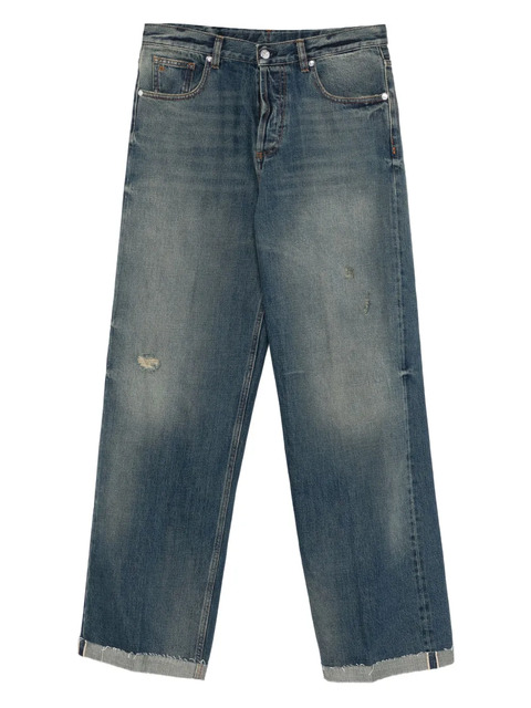 blue cuffed hem classic five pockets belt loops concealed fly and button fastening distressed effect
