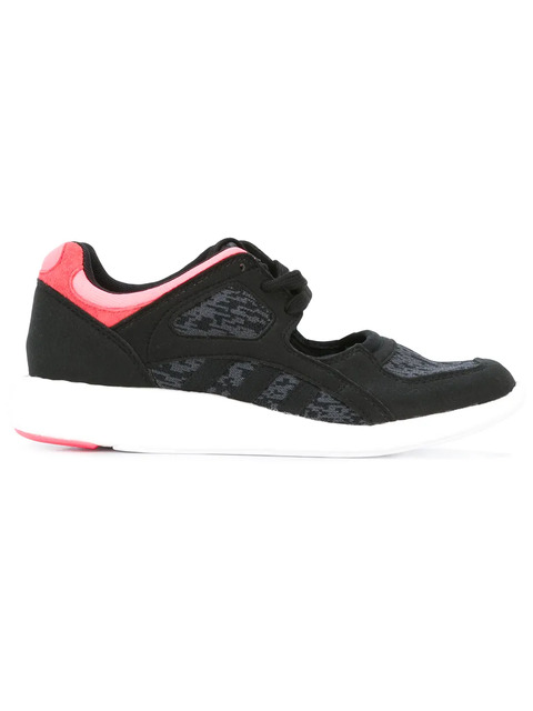 Black, grey and pink cotton EQT Racing 91/16 sneakers from Adidas featuring a round toe, a cut out detail, a lace-up front fastening, a branded insole, a padded ankle, appliqué stripes at the sides, a white rubber sole and a knit look mesh upper.