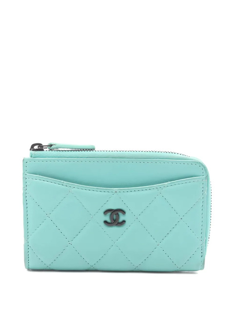 2021 turquoise blue leather quilted card slots zip closure logo detail