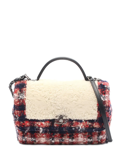 2017-2018 red/multicolour check pattern top handle chain detail internal zip pocket
