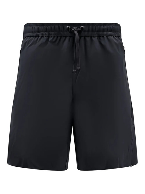 black elasticated waistband drawstring fastening side zip pockets back zip pockets logo patch Be mindful to try on swimwear over your own garments.