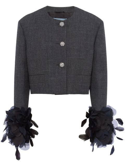 Prada feather-trimmed wool cropped jacket - 22503822 (LPN362481)