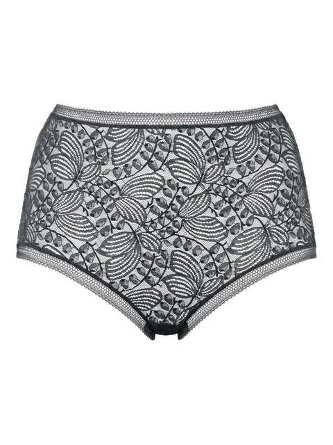 black floral lace high waist scalloped edges full brief cut delicate pattern Just a reminder that this piece must be tried on over your own garments.
