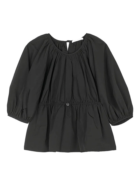 black taffeta texture gathered detailing button three-quarter sleeves keyhole at the rear