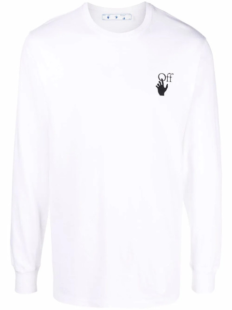 white cotton signature Hands Off logo logo print to the front signature Arrows motif logo print to the rear round neck long sleeves cuff sleeves straight hem