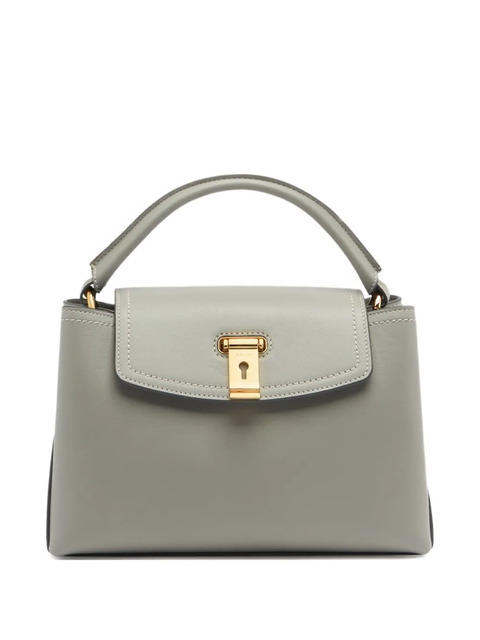 grey grained leather gold-tone hardware top handle detachable shoulder strap