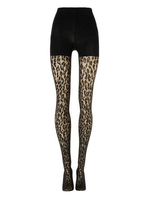 black leopard print control top sheer legs opaque waistband seamless toe