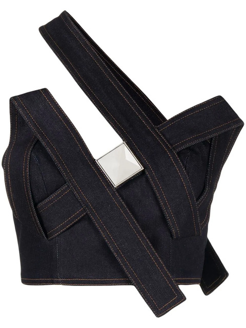 indigo blue cotton asymmetric design one-shoulder rear zip fastening cropped