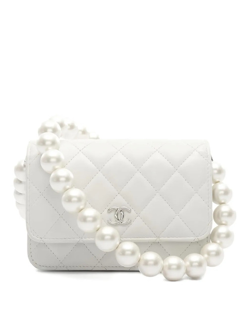 2021-2022 white quilted pearl chain silver hardware zip fastening internal slip pocket