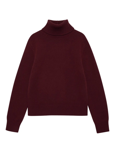 wine red roll neck long sleeves ribbed hem ribbed cuffs
