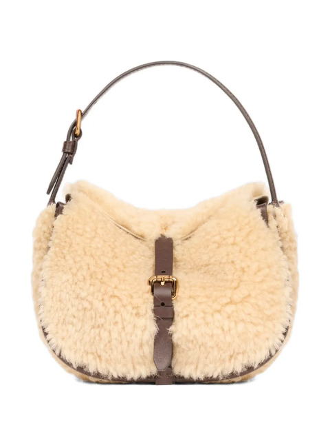 cream shearling texture top handle buckle detail gold-tone hardware internal slip pocket