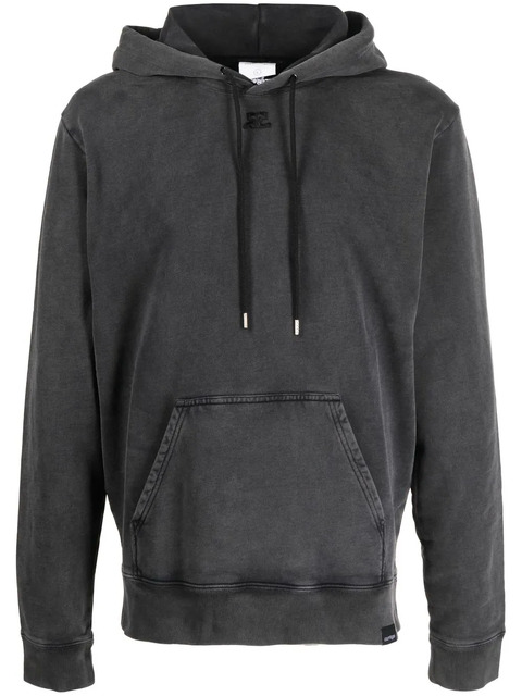 grey cotton faded effect embroidered logo to the front drawstring hood long sleeves single patch pocket straight hem