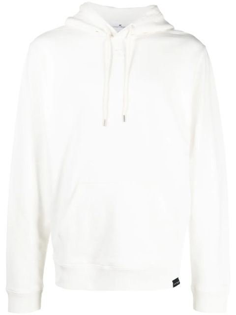 white logo print to the front drawstring hood long sleeves fitted-cuff sleeves front pouch pocket