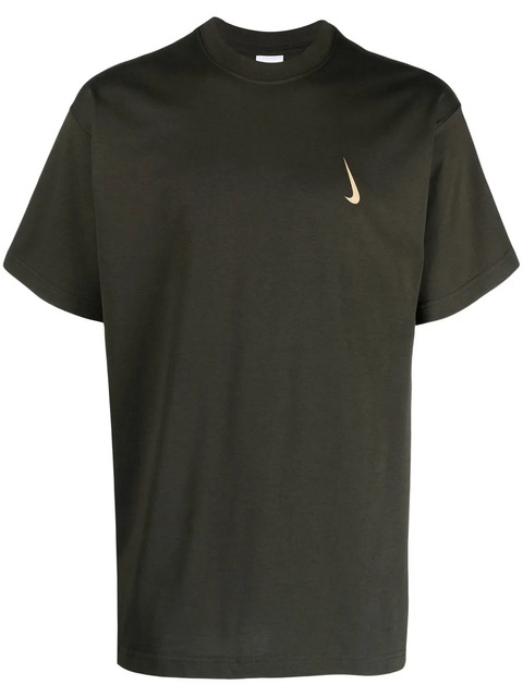 mushroom green cotton signature Swoosh logo detail round neck short sleeves straight hem
