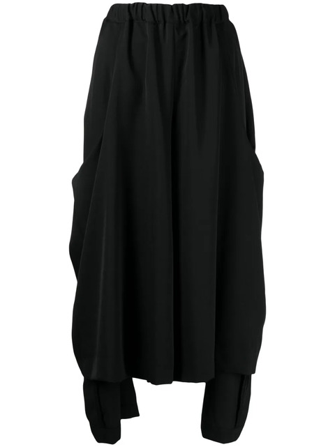 black wool mid-rise elasticated waistband two side slit pockets cropped asymmetric design
