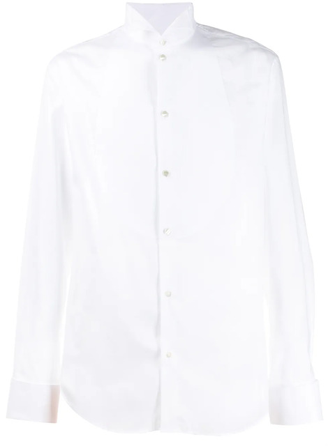 By being strongly focused on both style and functionality, Giorgio Armani creates elegant designs for the modern man that combine traditional standards of production with a dash of irreverent attitude. Crafted from white cotton, this classic plain shirt from Emporio Armani features a classic collar, a front button fastening, long sleeves and a curved hem.