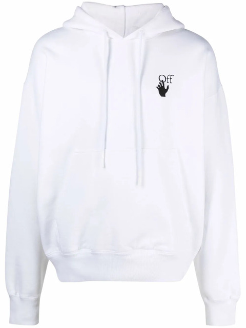 white cotton drawstring hood drop shoulder long sleeves ribbed cuffs ribbed hem front pouch pocket logo print at the chest signature Arrows motif