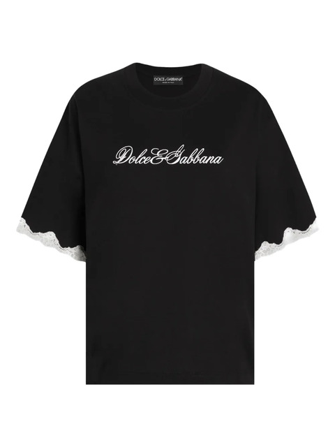 blackembroidered logolace-trimmed sleevesrelaxed fitshort sleevescrew neck
