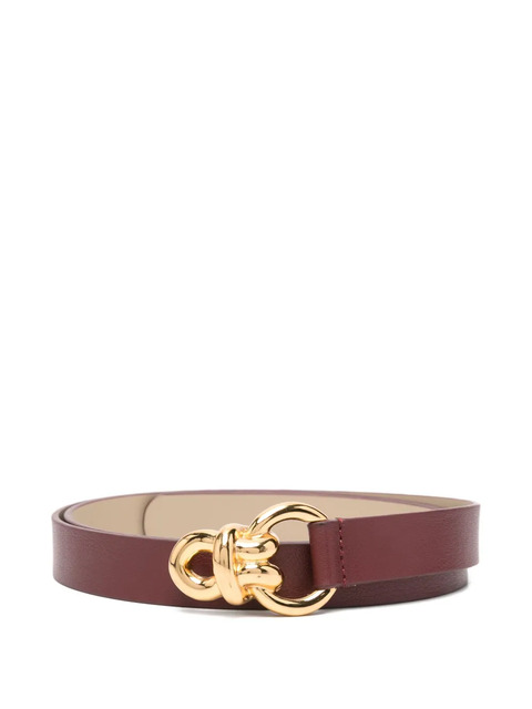 brown gold-tone hardware knotted detail buckle fastening adjustable fit tonal stitching