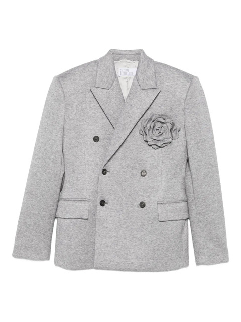 grey rose embellishment double-breasted button fastening front flap pockets long sleeves notched lapel