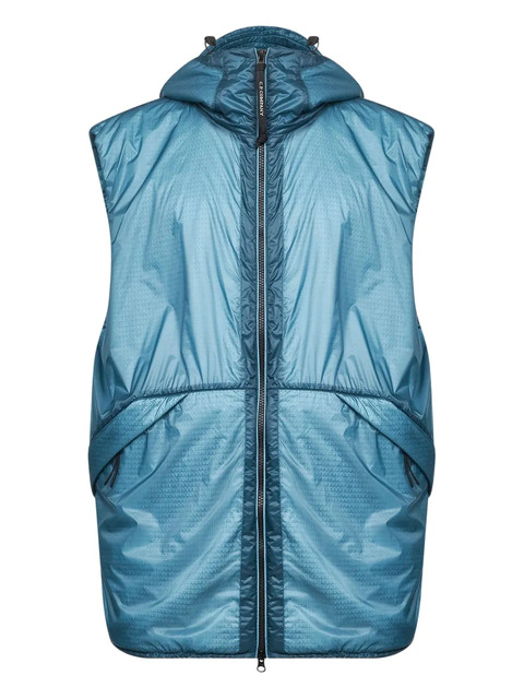 light blue adjustable hood goggle lenses sleeveless slanted side pockets adjustable drawstring hem C.P. Company suggests removing any detachable accessories before washing.