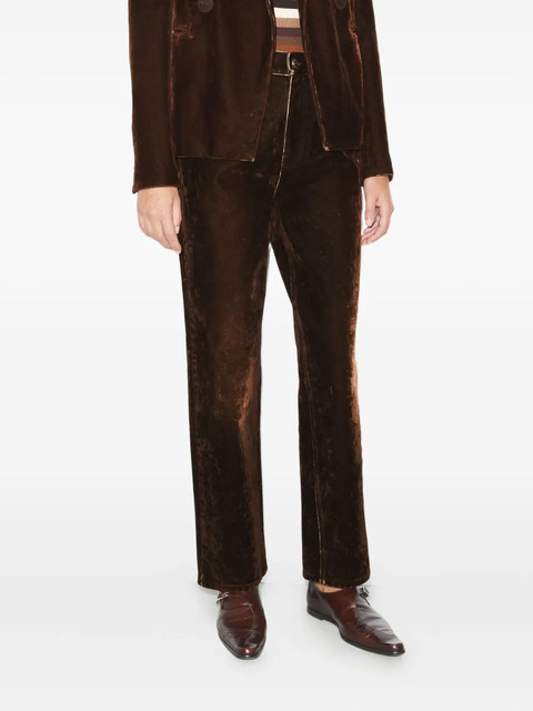 brown velvet cotton straight leg button fastening belt loops