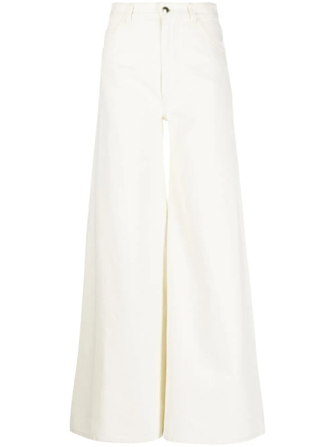 off-white cotton blend denim wide leg front button and zip fastening classic five pockets