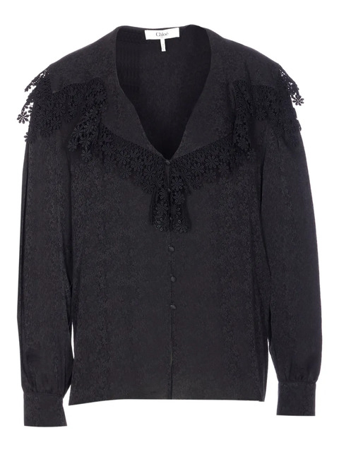 Chloe Chloé lace-trim long-sleeve blouse - 32264028 (LPN363693)