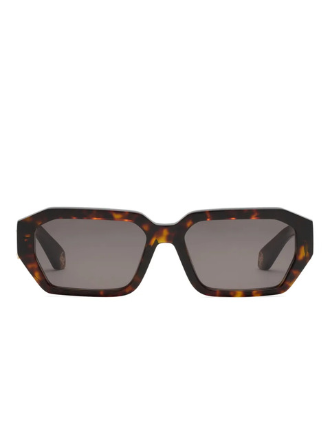 brown geometric frame logo plaque tinted lenses sculpted arms straight tips These glasses come with a protective case.