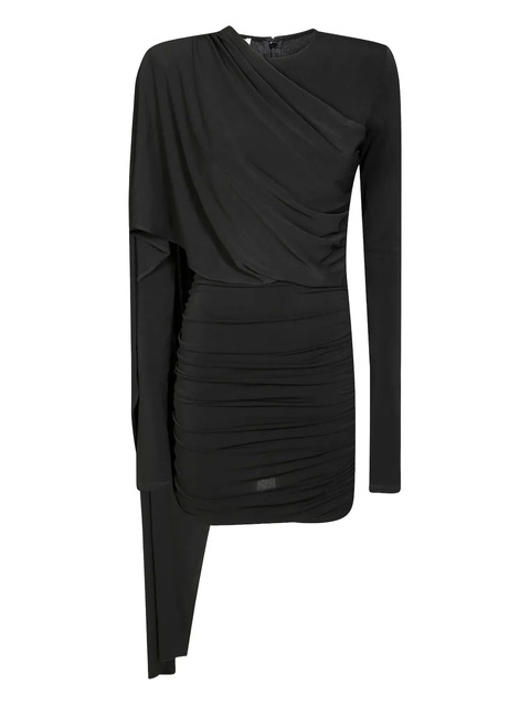 black draped detailing long sleeve ruched detailing rear concealed zip fastening