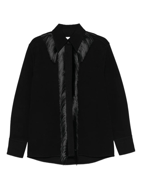 black fringe detail front button fastening long sleeves buttoned cuffs classic collar