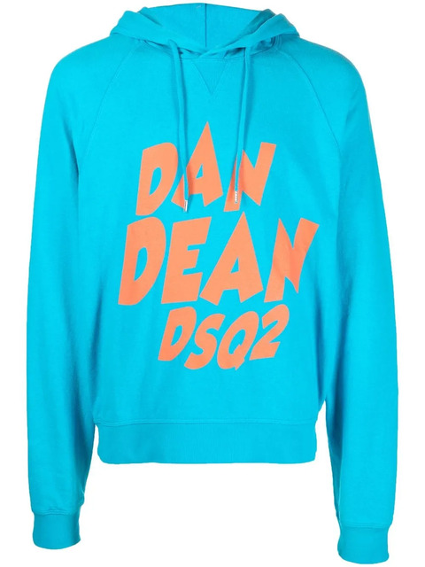 logo drawstring hoodie from DSQUARED2 featuring blue, cotton, logo print to the front, drawstring hood and long sleeves.