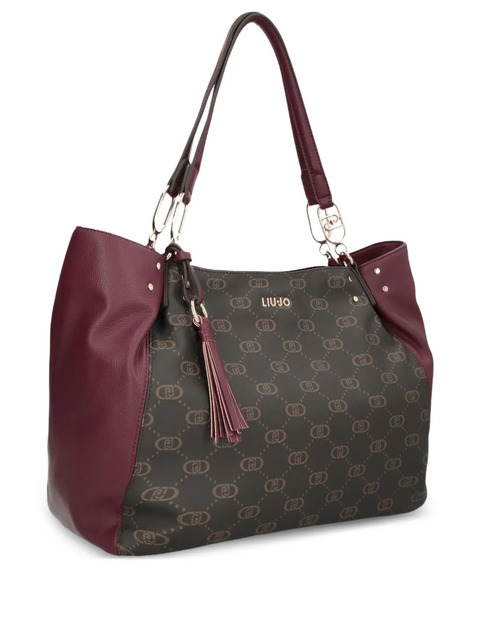 red/brown monogram pattern top handles gold-tone hardware tassel detail