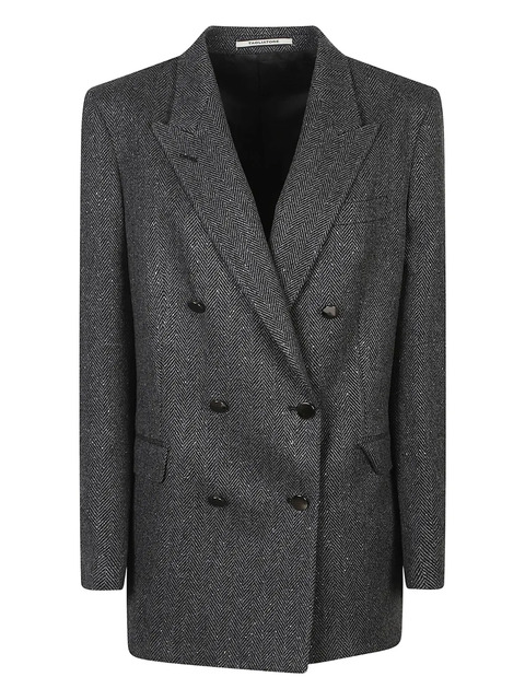 grey herringbone pattern double-breasted button fastening notched lapels long sleeves