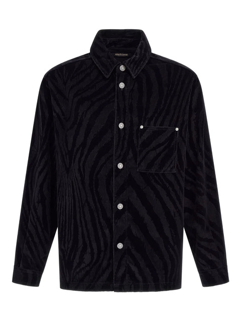black zebra pattern corduroy texture chest pocket button fastening long sleeves