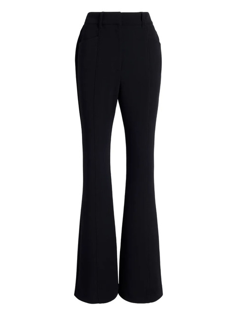 black flared hem panelled design side seam pockets belt loops concealed fastening