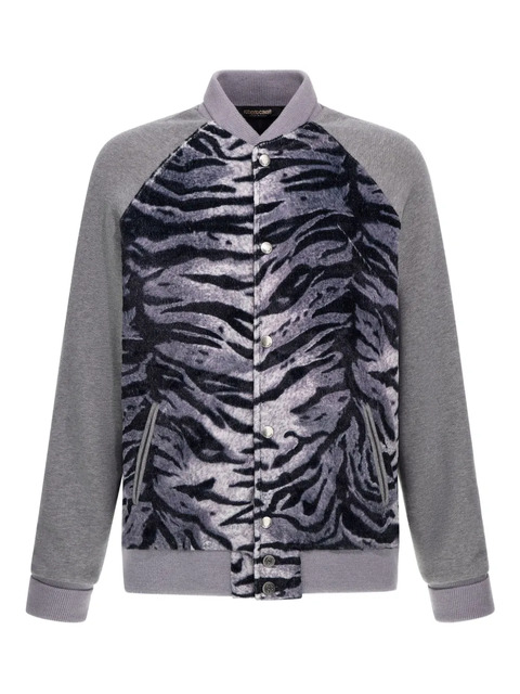 grey zebra print button fastening ribbed hem ribbed cuffs welt pockets