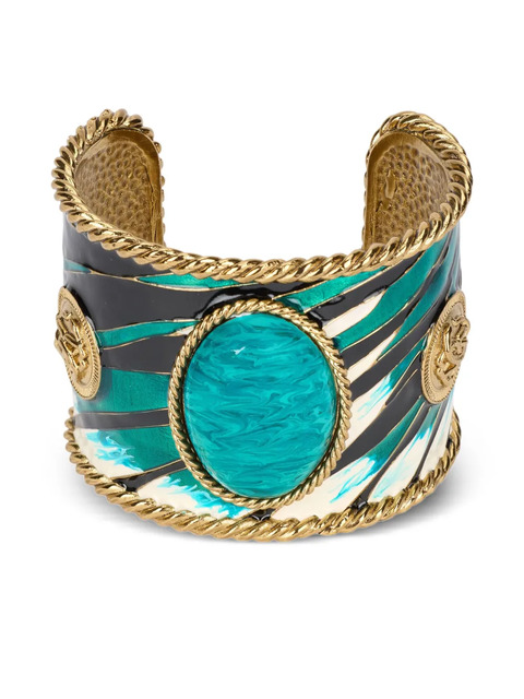 blue gold-tone medallion detail hammered effect rope trim open cuff