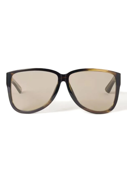 brown oversized frame tinted lenses straight arms These glasses come with a protective case.