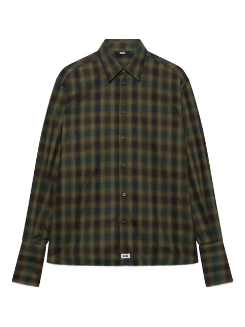 green check pattern button fastening long sleeves buttoned cuffs logo patch