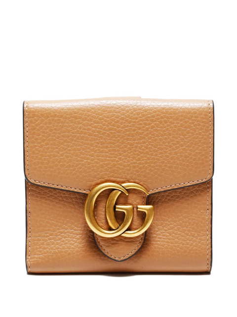 brown grained finish gold-tone hardware GG logo press-stud fastening card slots