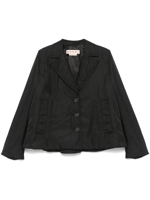 black padded design front button fastening notched lapels embroidered logo to the shoulder long sleeves two side welt pockets pleat detailing to the rear satin lining straight hem