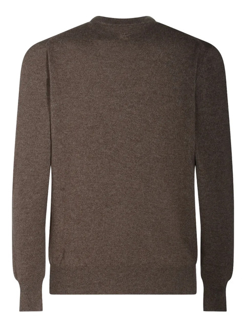 brown ribbed hem and cuffs round neck long sleeves knitted construction