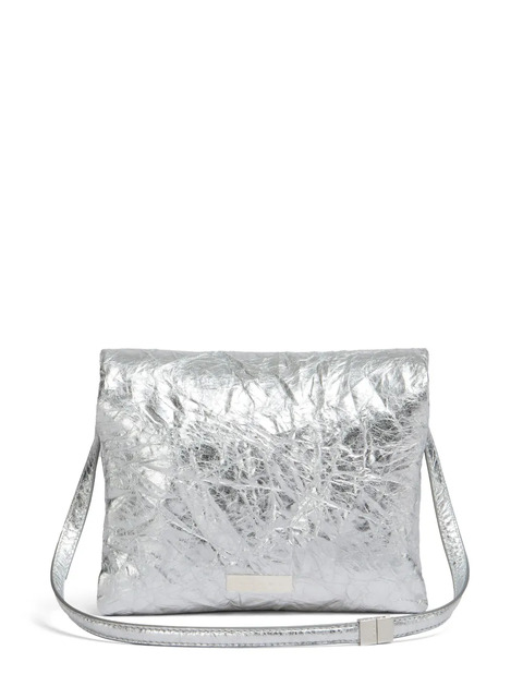 silver-tone calf leather metallic effect foldover top with magnetic fastening logo plaque single shoulder strap main compartment internal slip pocket