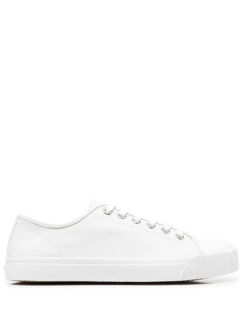 white leather/cotton signature Tabi toe front lace-up fastening round toe flat rubber sole branded insole