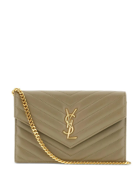 light brown quilted leather gold-tone logo chain strap flap closure wallet compartments
