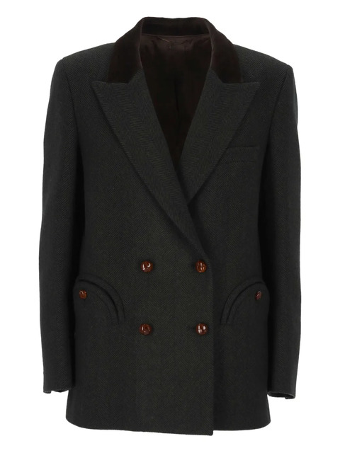 dark green herringbone pattern double-breasted button fastening paneled collar buttoned pockets