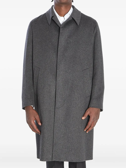 anthracite grey shirt collar concealed front button closure two welt pockets central back vent