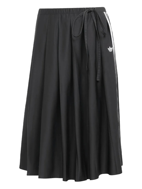 black signature Trefoil logo signature 3-Stripes logo pleated design elasticated drawstring waistband A-line silhouette straight hem